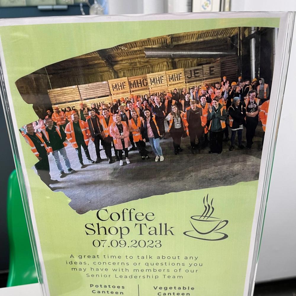 Along with our regular colleague briefings, each month members of the Manor Fresh Senior Leadership Team park themselves in our potato and vegetable factory canteens to enjoy a coffee and chat with our valued colleagues.